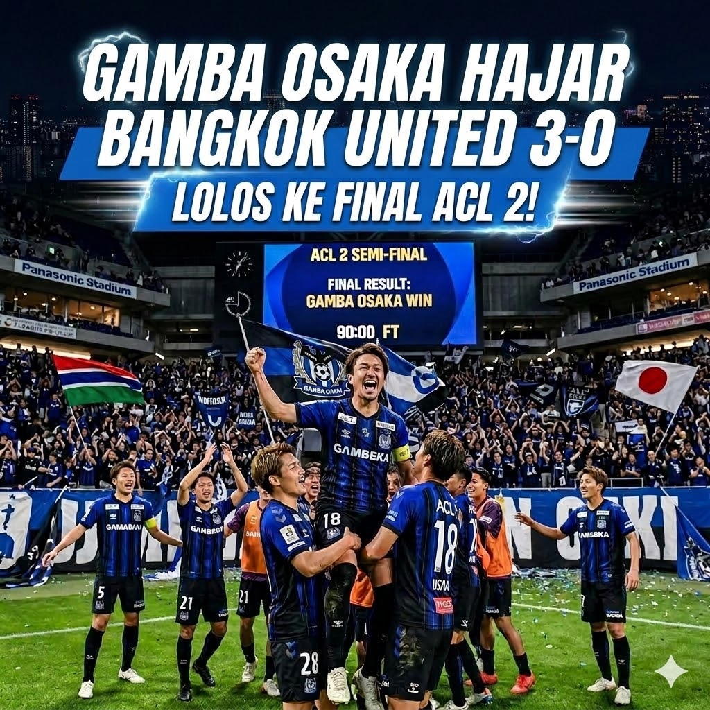 Gamba Osaka memastikan langkah gemilang ke final AFC Champions League 2 (ACL 2) setelah mengalahkan Bangkok United dengan skor telak 3-0 pada leg kedua semifinal. Kemenangan ini menjadi bukti kualitas dan mental juara yang dimiliki klub asal Jepang tersebut. Bermain dengan determinasi tinggi, Gamba Osaka mampu membalikkan keadaan setelah sebelumnya tertinggal agregat dari Bangkok United.