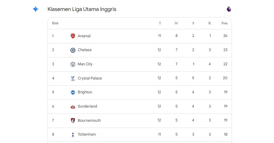 Kesimpulan: Pekan ke-12 ditandai oleh ketidakpastian tim besar (kekalahan Man City dan Liverpool) dan efektivitas tim-tim medioker yang berjuang keras meraih poin, seperti Newcastle dan Nottingham Forest. Persaingan kini bergeser dari dominasi di puncak ke perebutan ketat di zona Eropa dan pertempuran sengit untuk menghindari degradasi.